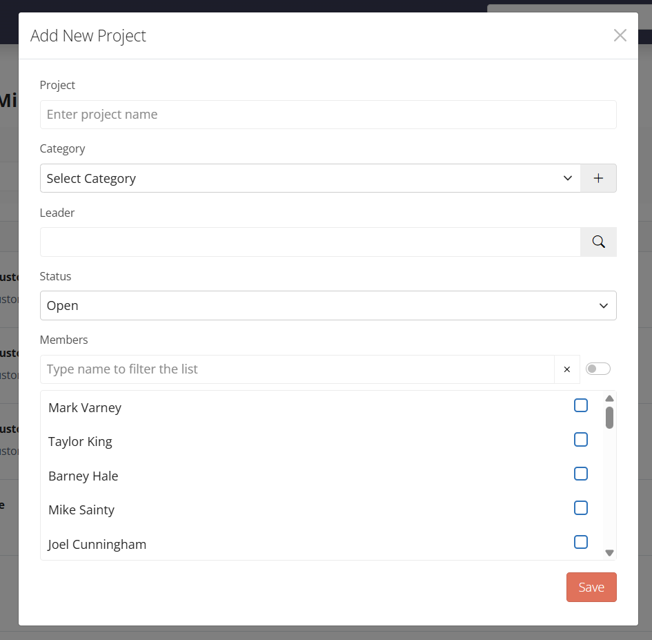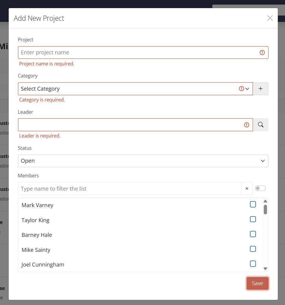 Selecting this prompt will present you with the following form, which when completed and "Save" is used, will Create your new project: